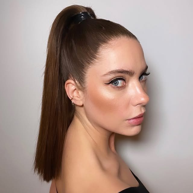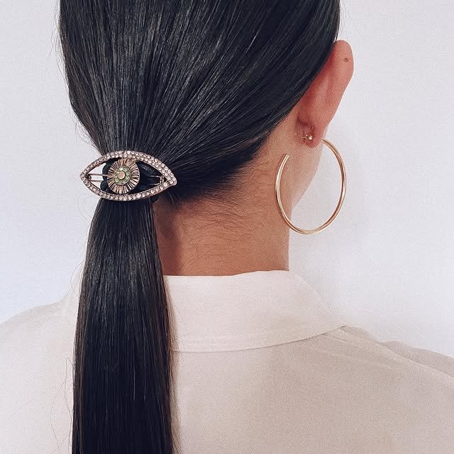 For the perfect high ponytail, brush your hair back and secure it tightly with an elastic. To add extra volume, place a bobby pin at the base of the ponytail with the open end facing upward. Your hair will hide the pin, but it will gently lift the ponytail and keep it looking fuller without needing constant adjustments.