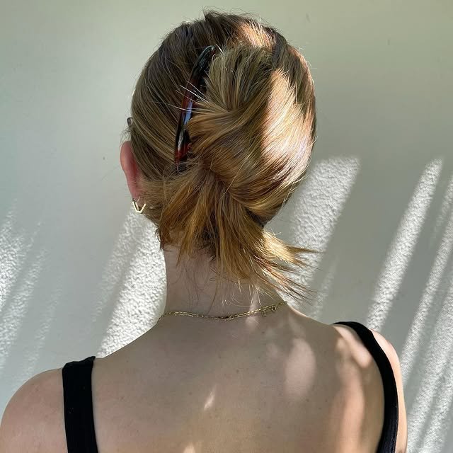 This style is a modern twist on the classic French twist. Start by pulling one side of your hair back and securing it with a few bobby pins. Then take the other side and twist it over the pinned section. Instead of pinning everything tightly, use a claw clip or decorative pins to hold the twist in place. Tuck in loose pieces for a cleaner look, or leave a few strands out for a relaxed finish.