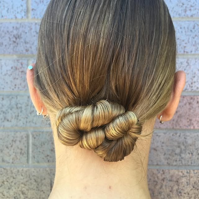 To create this sleek bun, apply a styling cream and gather your hair into a low ponytail at the back of your head. Twist the ponytail clockwise, then wrap it around itself to form a bun. Secure it in place with bobby pins for a smooth, polished look.