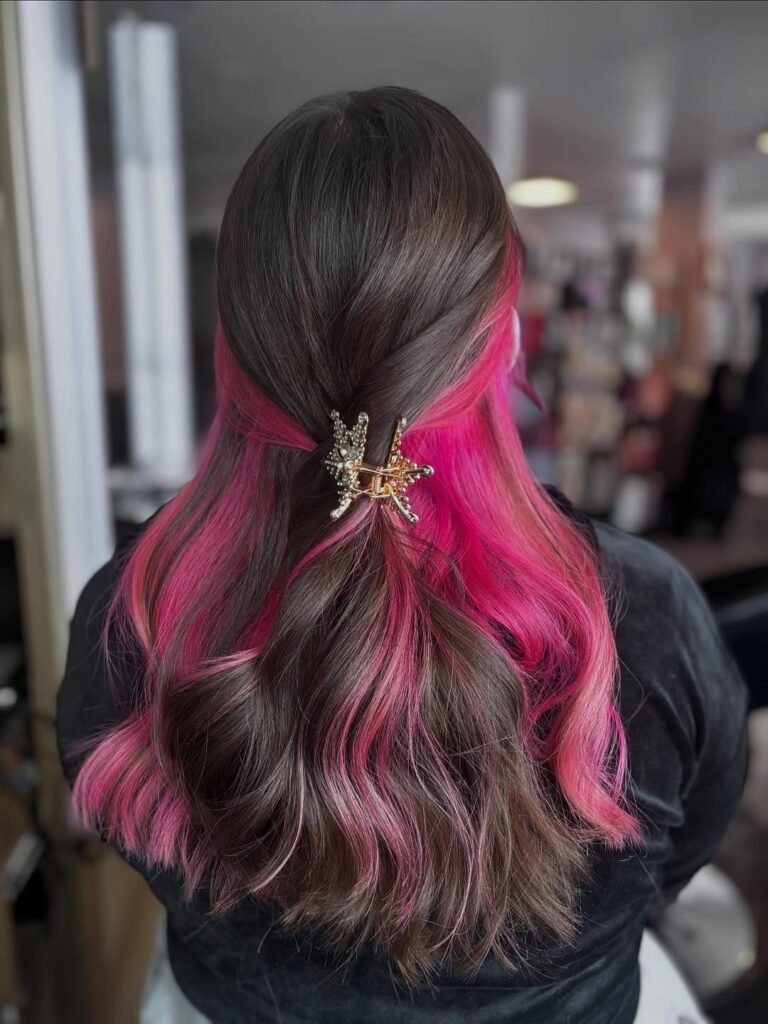 Hair color has evolved beyond simply covering grays or lightening up for the summer – it’s become a powerful form of self-expression. Among the latest trends, peekaboo highlights have emerged as one of the most exciting ways to show off your personality, offering a fun twist without fully committing to an all-over bold color.