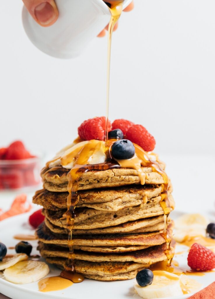 Made with ground flaxseed, peanut butter, and gluten-free oat flour, this recipe brings in more protein, fiber, and healthy fats than your standard pancake stack. So instead of a quick carb crash, you get a breakfast that actually keeps you satisfied.