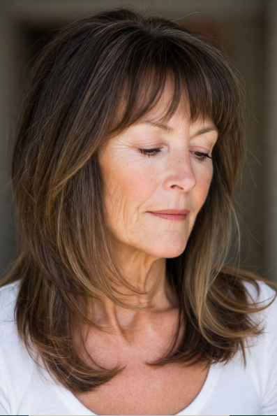 Anyone who thinks long, luscious hair isn’t for women over 50 hasn’t seen long layers with subtle waves. This beautifully flattering style works with any hair density, adding natural volume and fluid movement without feeling heavy or over styled. Soft waves enhance the layers, creating an effortlessly full, youthful finish that feels relaxed yet polished. It’s proof that long hair can be modern, elegant, and easy to wear at any age.