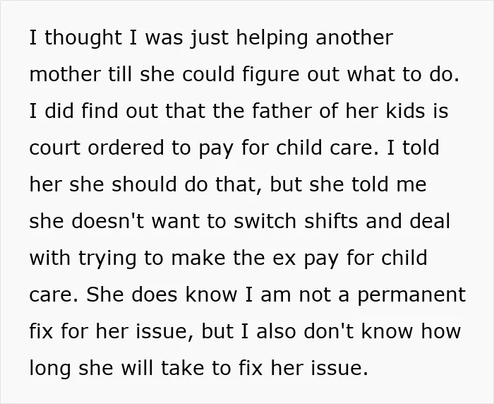 The woman later shared more details about her situation.