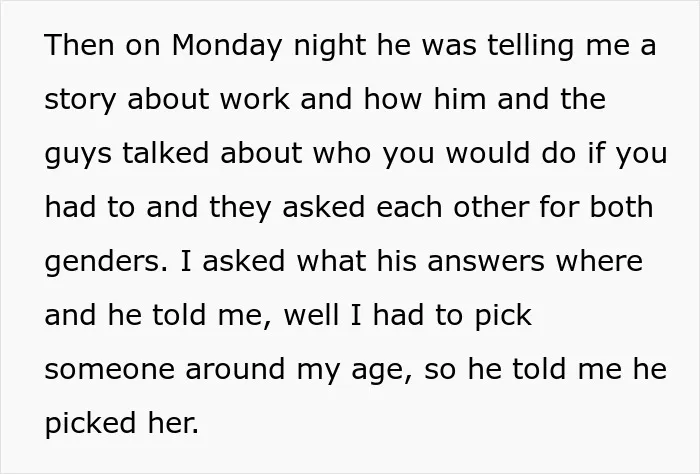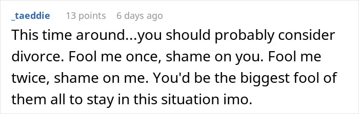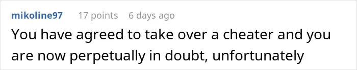 The wife explained that her husband had already broken her trust in the past by cheating.