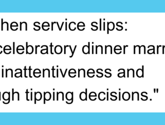 A couple who were celebrating having to wait 25 minutes before they were even noticed by a member…