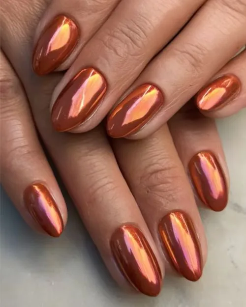 Rust isn’t just for forgotten bicycles. Rust chrome nails are rugged yet polished, with a color that says “I have vintage boots and I know exactly how to wear them.” So rich in tone that people will assume you coordinated your whole look on purpose. (Answer: always.)