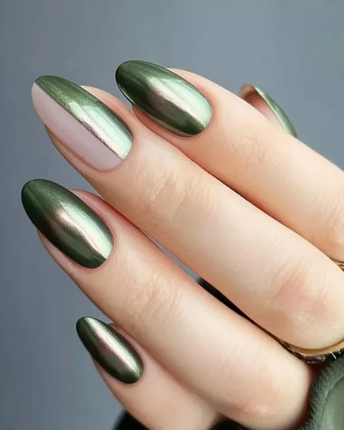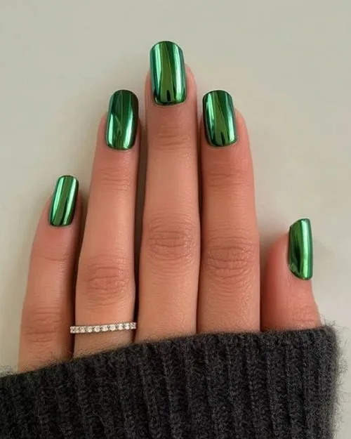Not all greens have to be dark and moody. Regular green chrome nails keep things fresh – celery, mint, Granny Smith apple. If you want a little lightness in your dark chrome world, these bring balance without going full pastel.
