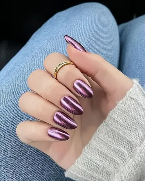 This shade is giving major grape jam, midnight glamour, and distant-royalty vibes. Purple chrome nails are deep, unexpected, and they look good with just about anything in your wardrobe. Royalty, but with a mischievous streak.
