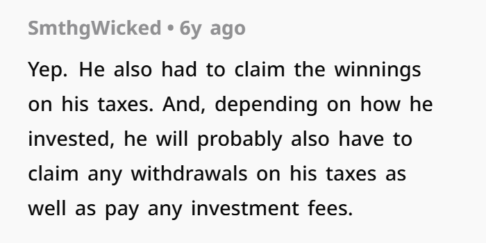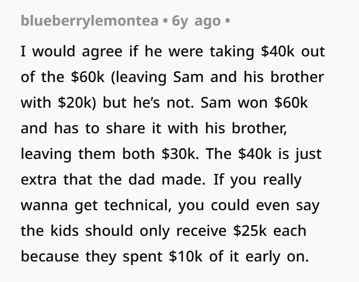 While the father has done right by his family financially, his ownership of this extra $40k raises some serious ethical questions over ownership and whether it is fair. Although he may not be technically in the wrong it is still his fund after all he could avoid this kind of conflict if he approached the matter in a more transparent and collaborative way that respected family trust. In the end, it should be finding a balance between what he contributed personally and what the purpose of the winnings should have been: providing a better future for his kids.