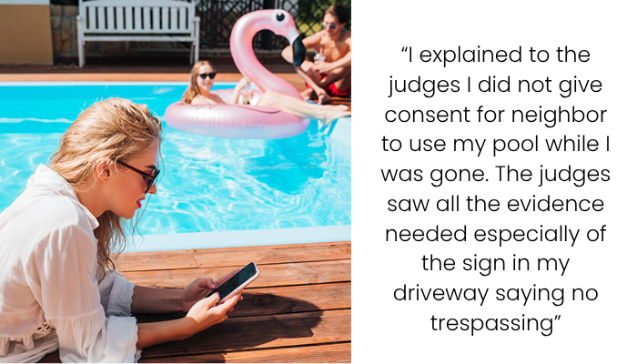 Trespassing refers to entering someone else’s property without permission. In the United States, this can be classified into varying degrees, with second-degree trespassing often defined as unlawfully entering or remaining on another’s property without explicit authorization but without the intent to commit a felony. The fact that the pool was enclosed, clearly signed, and covered adds to the legal weight of the homeowner’s complaint.