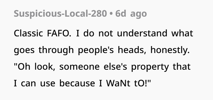 From an ethical perspective, this story reflects the dangers of entitlement and poor boundaries. The neighbor not only encouraged illegal activity but tried to exploit a fictional relationship to justify violating someone else’s space. This behavior reflects what psychologists refer to as “moral disengagement” rationalizing unethical behavior by downplaying harm or blaming the victim.