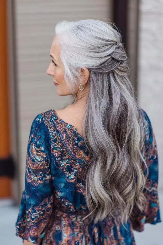 Long silver hair has become a unique and powerful fashion statement. Paired with modern clothing, classic styles, or minimal makeup, silver hair creates a striking contrast that turns heads. Many fashion designers and photographers now highlight older women with silver hair, recognizing their unique and timeless appeal.