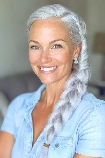 Silver hair allows for creative experimentation: adding braids, waves, or highlights can make the hair look dynamic and trendy. Accessories such as hairpins, scarves, and hats also stand out more vividly against silver strands, giving older women a playful yet sophisticated look.