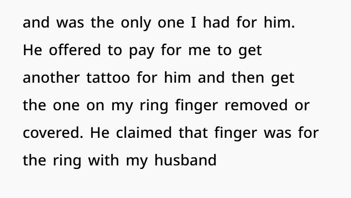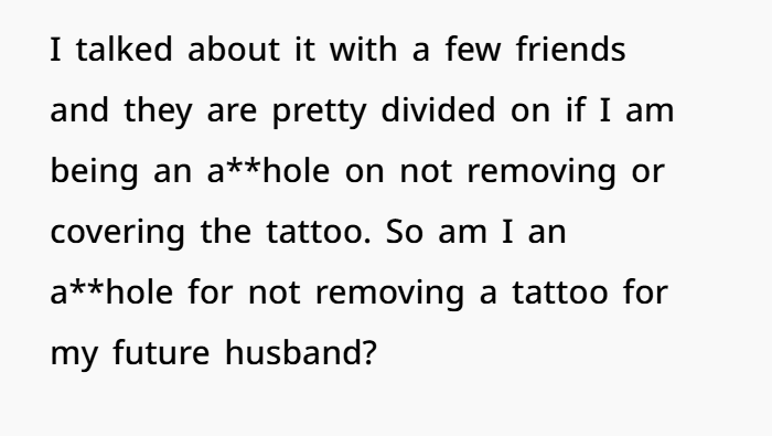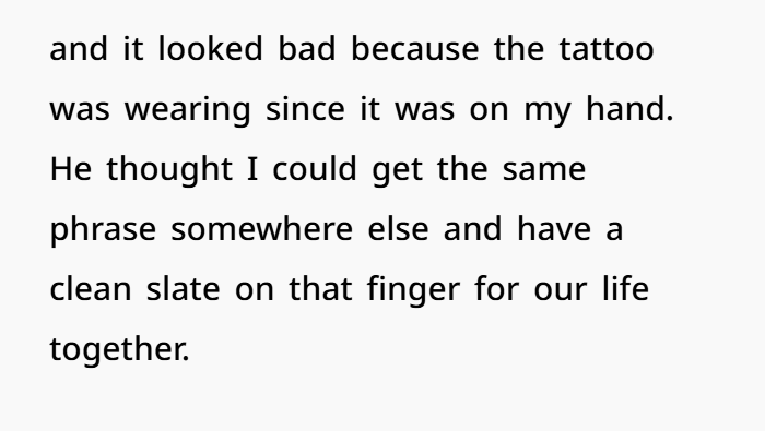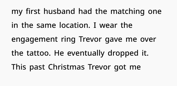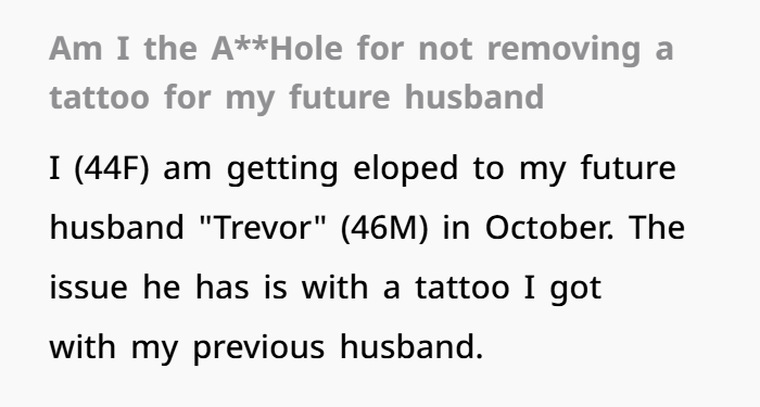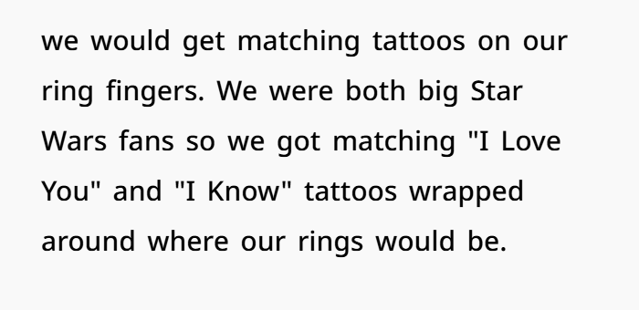 The woman had a matching Star Wars tattoo on her ring finger with her late husband. Now, as she prepares to marry her fiancé Trevor, he’s asking her to remove the tattoo. While she accepted a tattoo removal gift card from him and handled it gracefully, she’s still emotionally attached to the memory and so are her children.