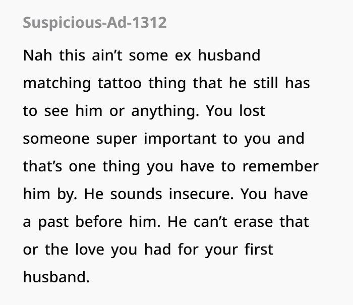 Losing a spouse is a life-changing tragedy, especially when children are involved. As etiquette and communication expert Rosalinda Randall told Bored Panda, “A person never forgets a spouse, especially when that union created children.” That statement hit home when a 44-year-old widow, whose husband passed away in a car accident, found herself in a new relationship but struggling with a symbolic tattoo from her past.