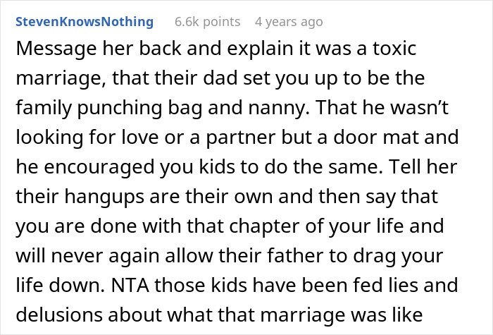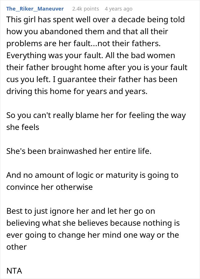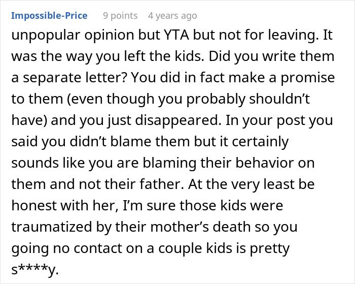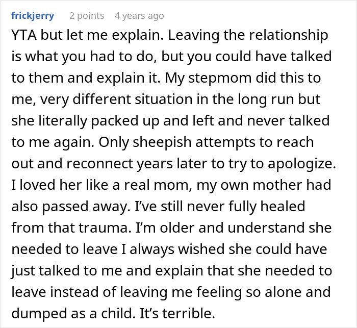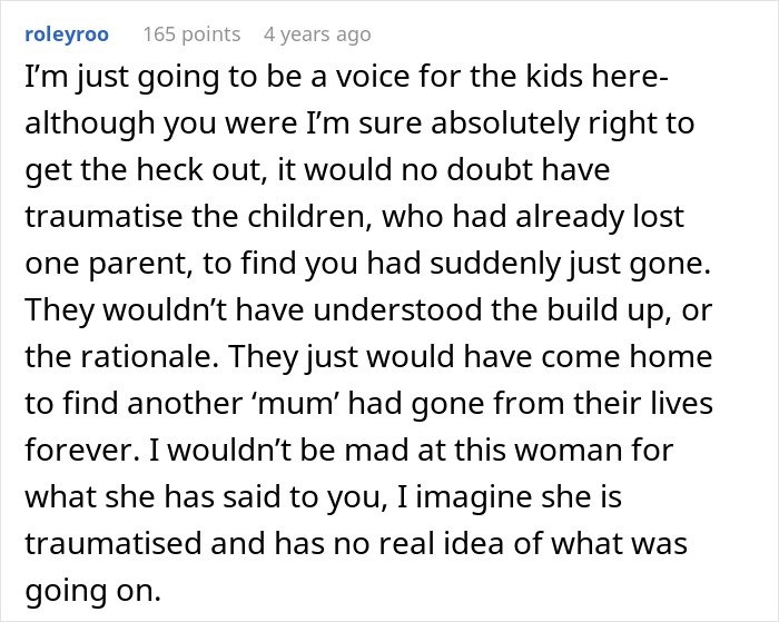 Others criticized her for leaving without explaining anything to the children. They argued the lack of closure caused lasting pain.