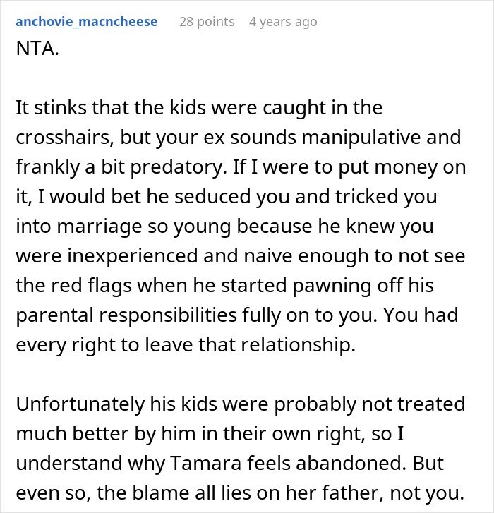 Many people felt the woman acted appropriately and argued that she had no obligation toward her ex-husband’s children